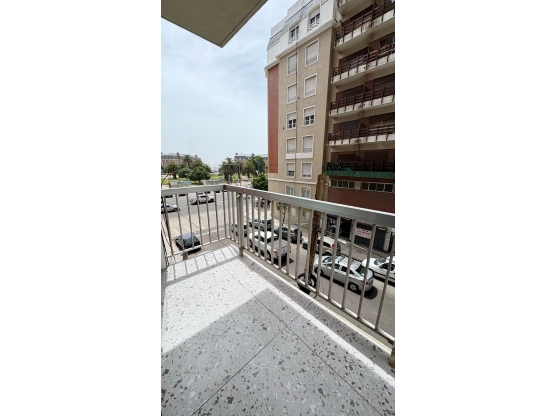 Amplio living comedor con balcón saliente a la calle y vista lateral a la plaza y al mar